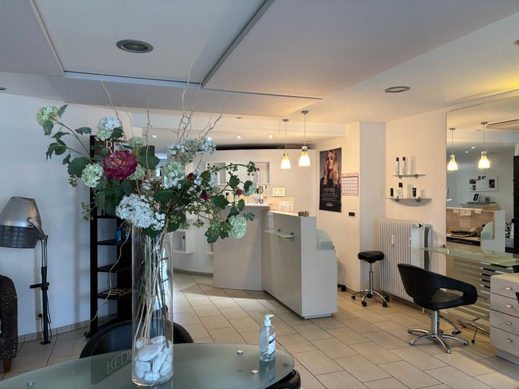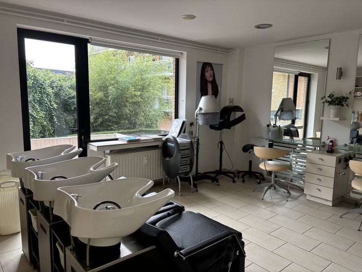 Rez : grand espace style loft aménagé en salon de coiffure, cuisine, WC, terrasse arrière