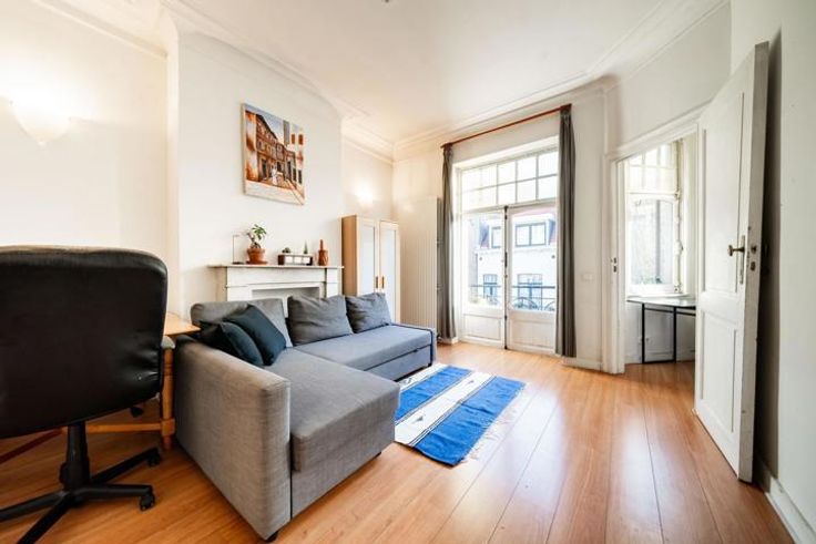 Schuman, Cinquantenaire, Ambiorix. Situation géographique de premier choix, au cœur du quartier européen, à proximité immédiate du Parc du Cinquantenaire et des Squares Ambiorix et Marguerite. Cet élégant et lumineux appartement de style Art Nouveau se situe dans un petit immeuble historique sans ascenseur, aux faibles charges, conçu par l'architecte François Tilley et rénové avec soin en 2010. Ce bien offre une combinaison parfaite de charme historique et de confort moderne. Avec ses hauteurs sous plafond et ses éléments d’époque, l’appartement propose une superficie habitable de ±85 m², comprenant un salon lumineux agrémenté d’une baie vitrée (bow-window) et d’un accès à un balcon orienté est-sud, apportant une belle luminosité à la cuisine et au séjour, deux chambres spacieuses, une salle de bains fonctionnelle, ainsi qu’une cuisine équipée. Ce bien bénéficie également de châssis double vitrage, de deux balcons, d’un chauffage central au gaz, de compteurs individuels pour l’eau et l’électricité, et d’un parlophone pour votre confort. Avec un PEB de niveau D+ et une électricité conforme, cave et mansarde de +/- 15 m2, cet appartement représente une opportunité exceptionnelle. Excellent investissement, demande croissante dans le quartier (meuble et non meublé). Un bien rare à ne pas manquer, offrant un cadre de vie unique dans un quartier dynamique et historique, à proximité de toutes les commodités : gare et métro Schuman, parcs, restaurants, bars, supermarchés, ainsi qu’un