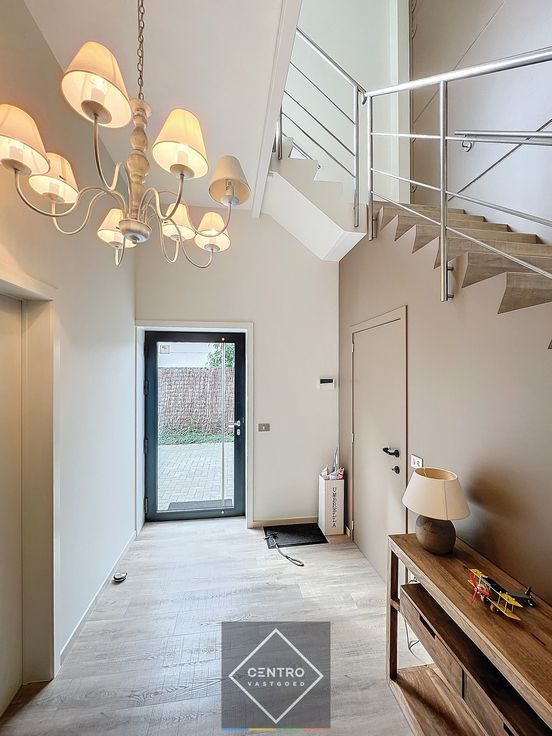 Benaderende OPPERVLAKTEN: Constructie - bewoonbare oppervlakten Woning: 220 m² Magazijnen: 547 m², uitbreidbaar tot 850 m² ! Grondoppervlakte Totale grondoppervlakte: 1.620 m² 5 parkeerplaatsen vooraan en aparte oprit zijkant. INDELING: Woning Gelijkvloers: Inkomhal met trap - toilet - garage met alle tellers - zuid-oost gerichte tuin met groot tuinhuis - volledig omheind (Bekaert draad en automatische poort op zijkant) - privé oprit in klinkers. Eerste verdieping: Bureel (via living of inkomhal) - living (airco) - woonkamer - keuken met ziteiland (Miele vaatwas, AEG oven, AEG microgolf, dampkap, vitro-keramische kookplaat) - bijkeuken (met deur naar terras) ingemaakte kasten en CV-ketel (°2013) - nachthal via keuken of living - 4 slaapkamers - berging - badkamer (dubbele lavabo, bad) vernieuwd in °2019 - aparte doucheruimte met lavabo - apart toilet. Magazijn + kantoor: Gelijkvloers: Winkel/balieruimte - centrale gang naar: bureel (doorgang naar app), kleedkamer M, sanitair M/V apart met lavabo, kleedkamers V, refter - stock-in en stock-uit ruimten met sas en keuken; vrije hoogte 2,75m - magazijn van 295,20 m² (12,30 x 24,00) vrije hoogte 3,60m - stockage. AFWERKING: Betonnen constructie vooraan (glv+app) isolatiebeton 15cm en betonnen gewelven, achteraan (atelier) metaalconstructie met sandwichpanelen 8cm geïsoleerd - geïsoleerd (PIR) plat dak met roofing - warmteblazers JAGA AVS op warm water (°2022) - 2 manuele Nassau poorten (b: 2,50m x h... Renovatieplicht: onbekend