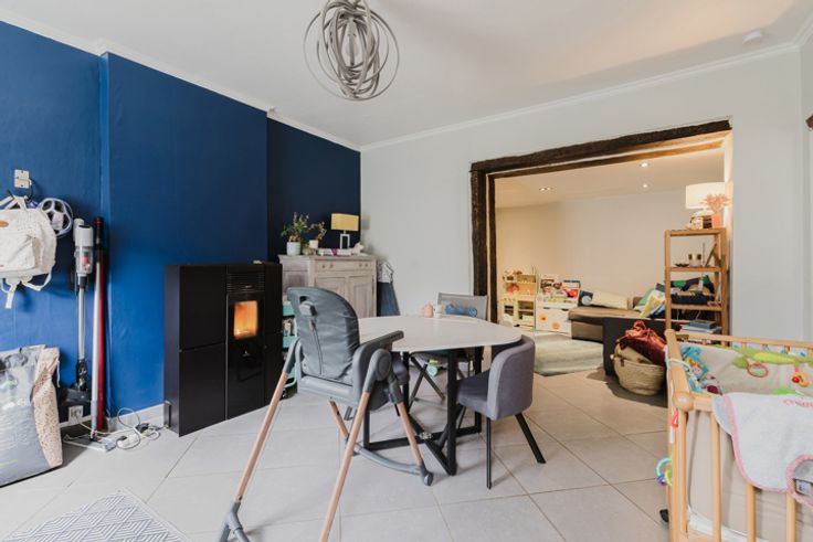 A Saint-Servais, dans une rue calme et peu fréquentée. Proche des écoles, commerces, bus et grands axes et du centre de Namur et sa gare. Jolie et coquette maison de 128m2 à découvrir! Idéale pour un premier achat, un investissement ou simplement y vivre. Cette surprenante maison 3 ch offre des espaces de vies très agréables. Belle cuisine semi-équipée ouverte donnant sur un chaleureux séjour cosy. Ambiance très agréable avec la flamme de son poêle à pellets et les boiseries. L'aménagement optimisent les espaces. Belles possibilités d'agencement. Cette chaleureuse maison comprend un salon, sam, cuis, wc séparé et espace buanderie, sdd à l'Italienne et espace grenier. PAS de jardin mais une terrasse à l'avant. PAS de place de parking devant la maison mais possibilité de se garer à environ 100m de la maison. PEB D, électricité conforme, volets, boiler récent. Bien découvrir sans tarder! Infos et visites: jfg@jf-immo.be ou 0475/38 88 86
