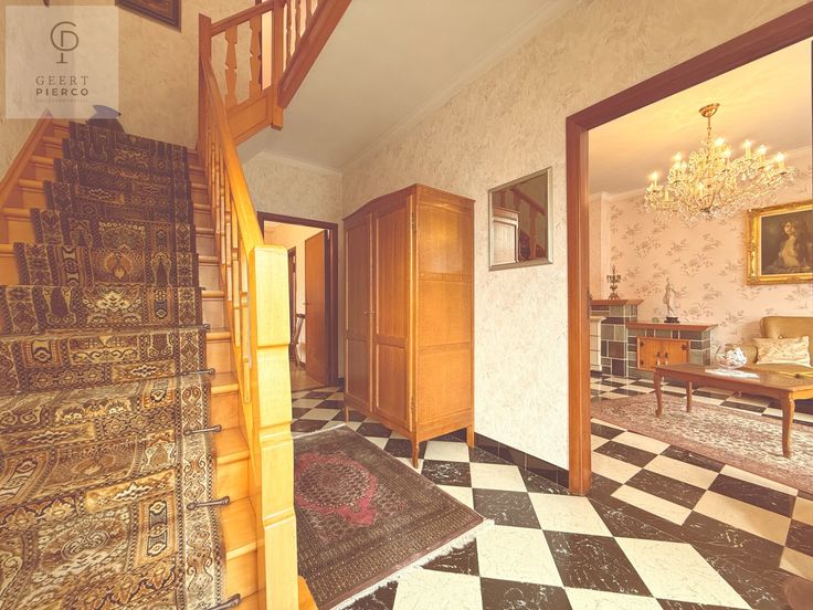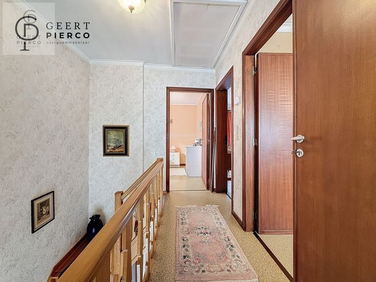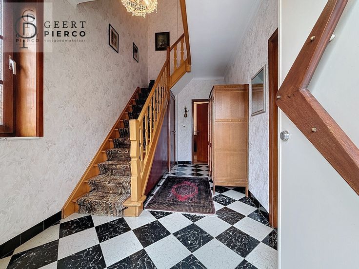 Via de trap in de inkomhal kunnen we ons begeven naar het verdiep.