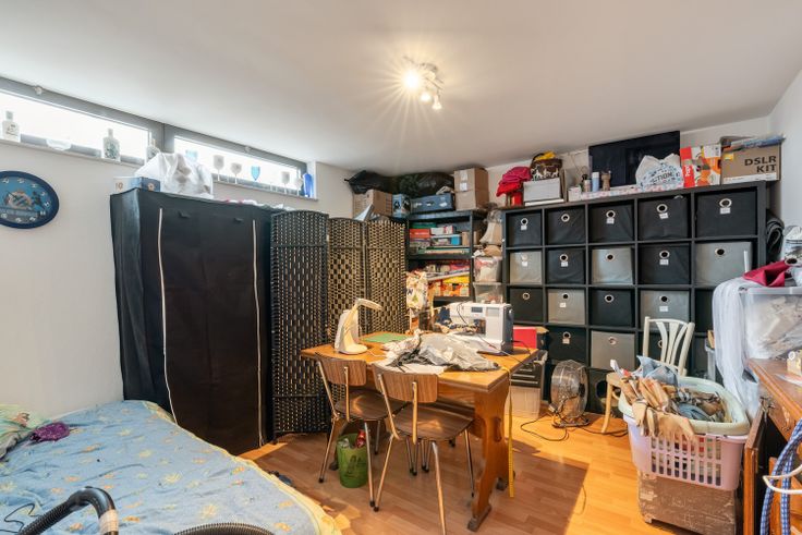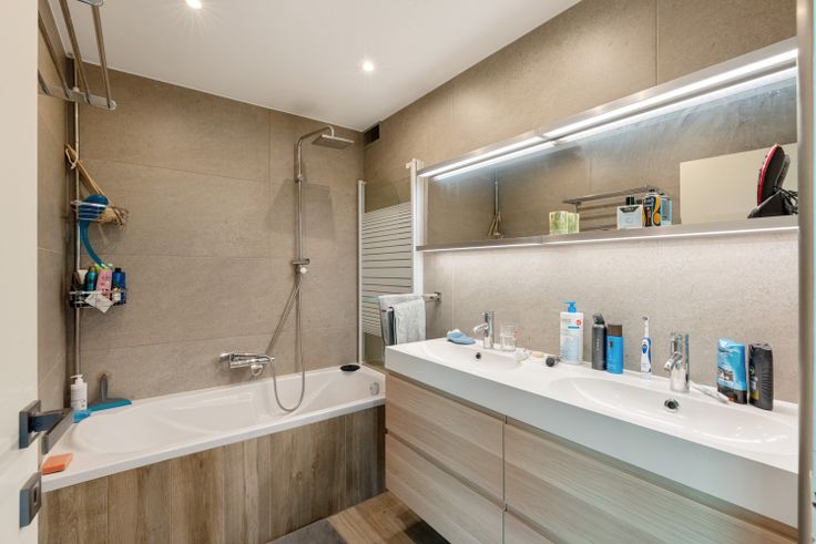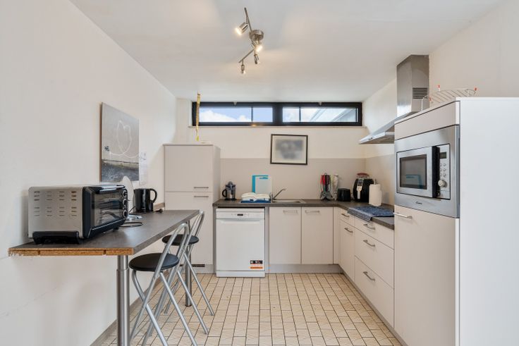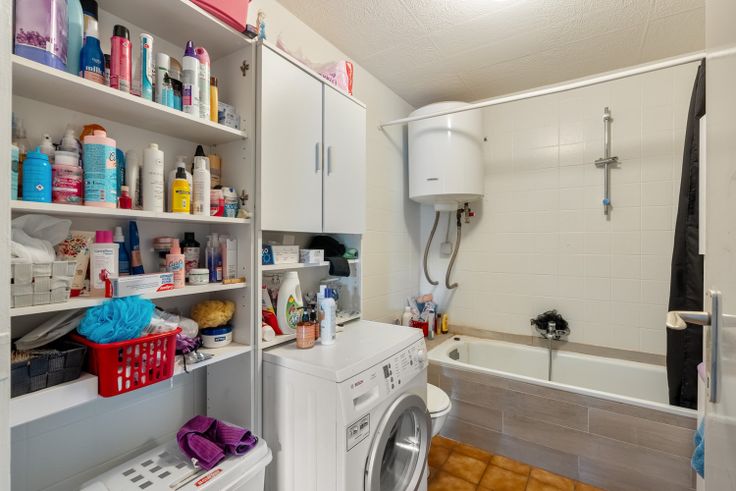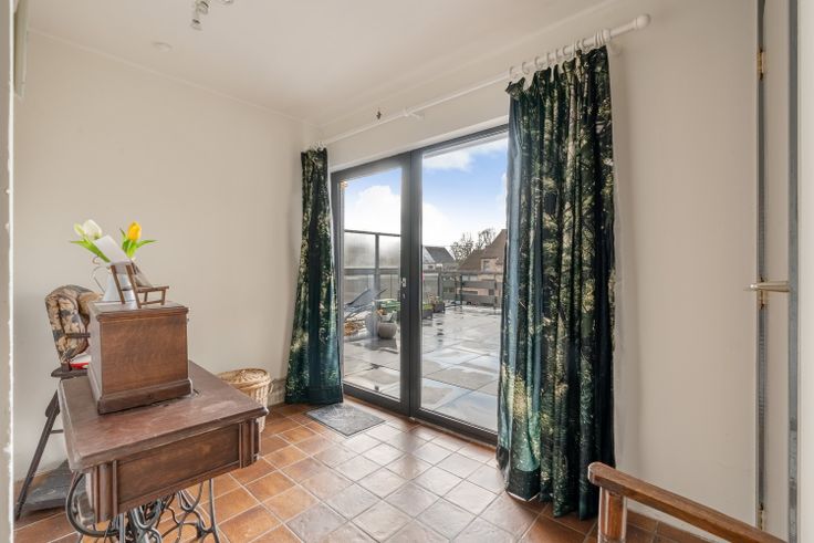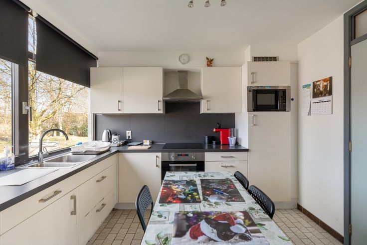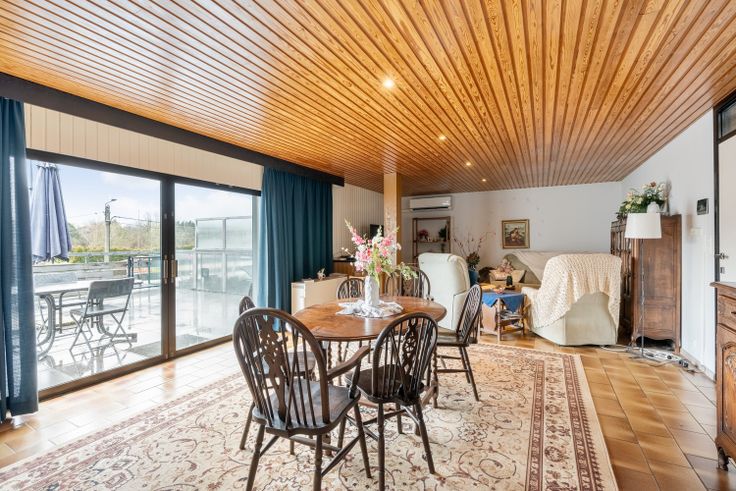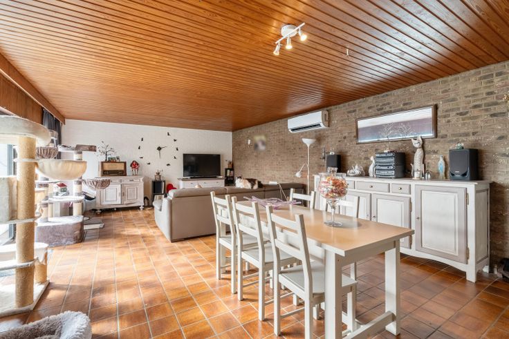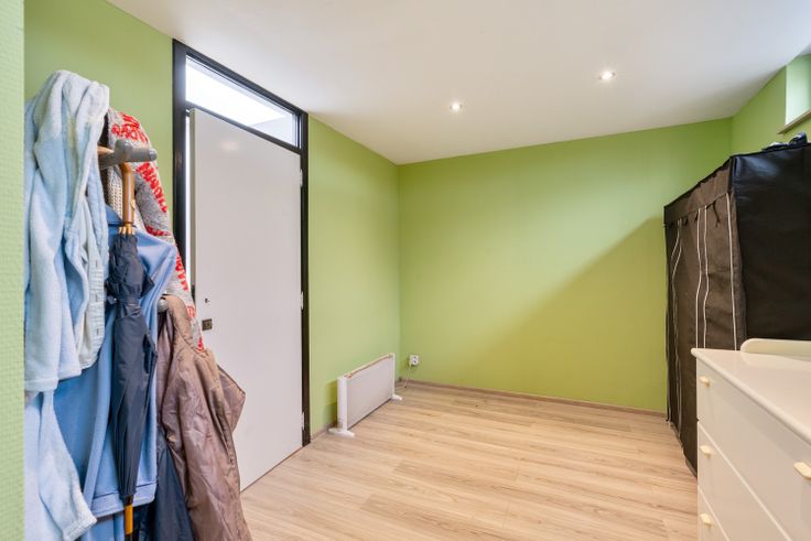 Een ruime inkomhal, woonkamer- eetkamer, vernieuwde keuken. Een badkamer, douchekamer/berging/wasplaats en 5 slaapkamers.