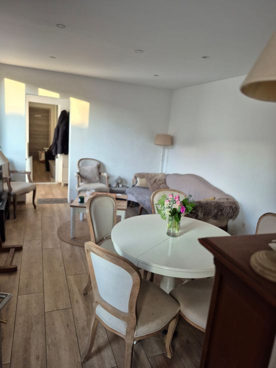 Spacieux et lumineux, cet agréable appartement 2 chambres (90m²) occupe tout le rez-de-chaussée de ce petit immeuble. L'entrée et les pièces à vivre sont à l'arrière du batiment donnant sur un grand jardin. Très grand parking (à l'arrière également). Proche de toutes facilités (moins d'1km de la gare) .