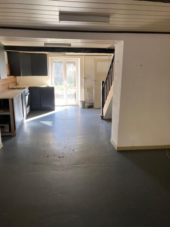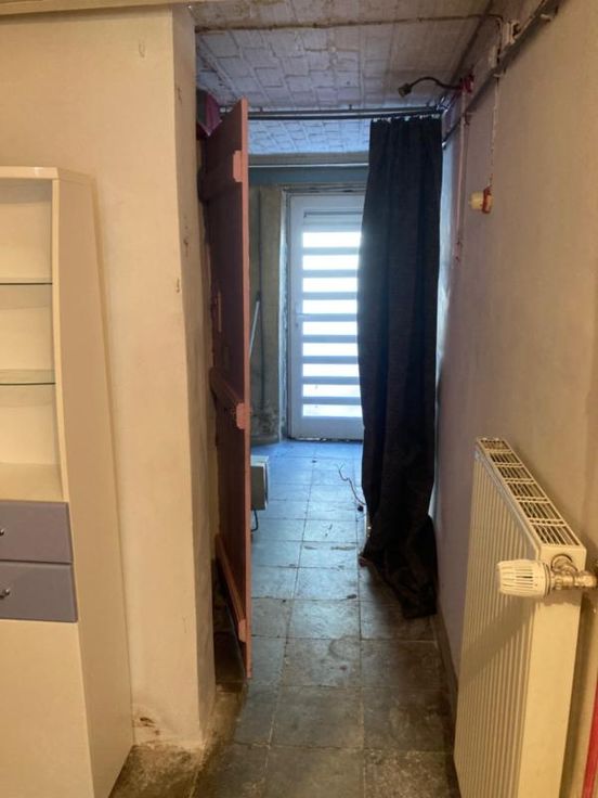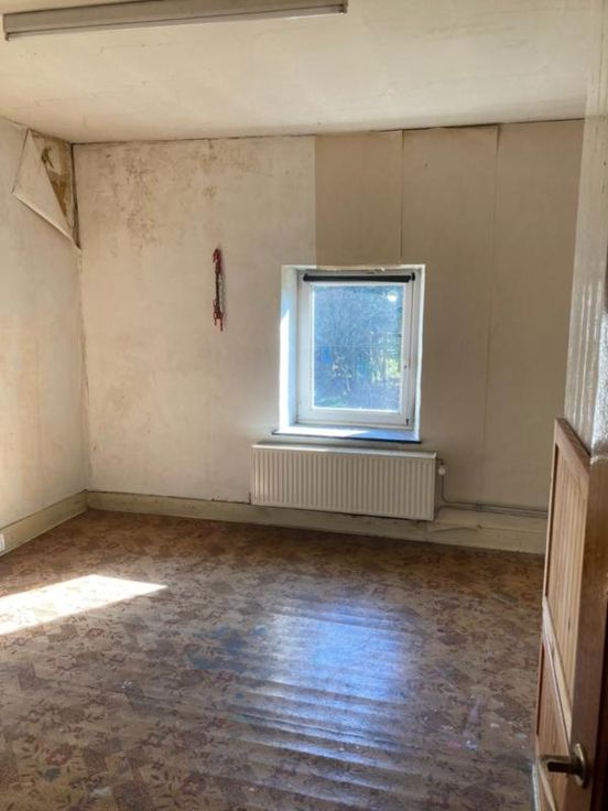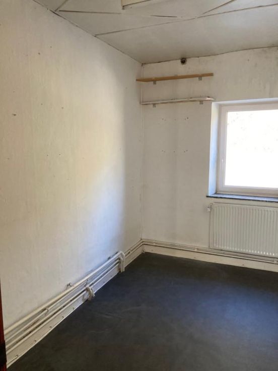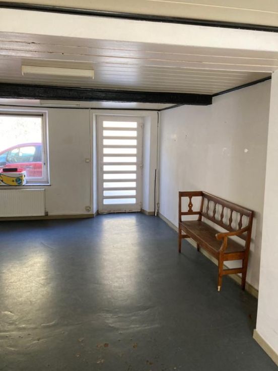 Maison mitoyenne avec jardin, à rénover, sise à Jemelle, rue du Congo 5. Contenance de 2 ares 24 centiares. La maison est composée, au rez-de-chaussée, de pièces de vie et de sanitaires, à l’étage de quatre pièces à usage de chambres, bureau ou autre, et au second étage, sous le toit, d’un grenier présentant un beau volume. Située à proximité des commerces et écoles.