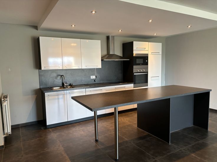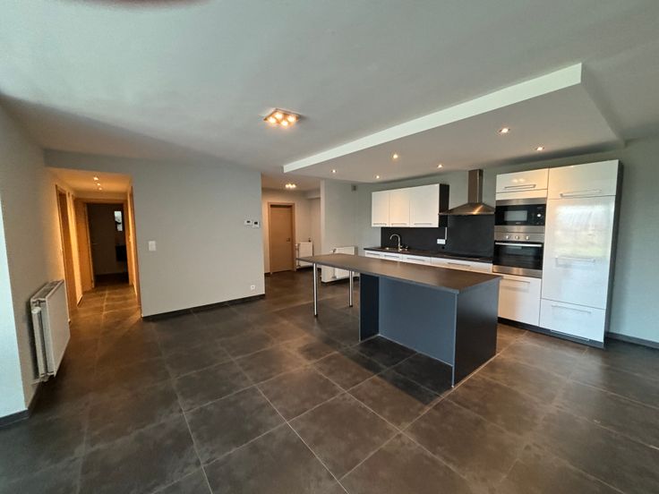 Cuisine équipée avec ilot central ouverte sur le living avec vue dégagée donnant accès sur une grande terrasse, 2 chambres, 2 wc, 1 salle de douche, une salle de bain, local technique/ buanderie.