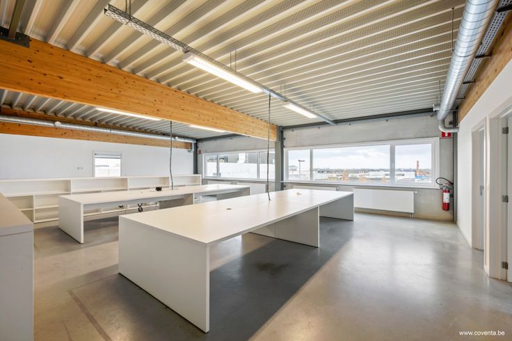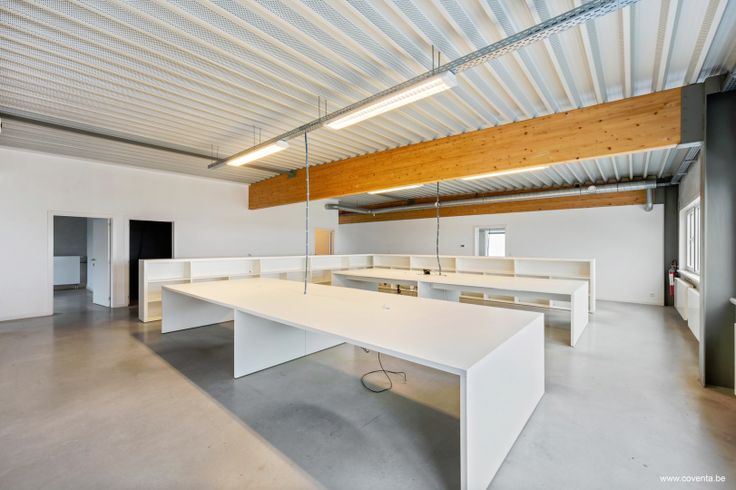 Burelen van +- 300m² met diverse afzonderlijke burelen, kitchenette, stockageruimte, toiletten.
