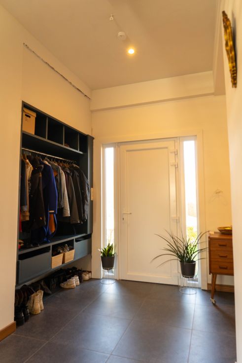 De woning beschikt over zonnepanelen, een terugdraaiende teller en een regenwaterput die aangesloten is op toiletten en wasplaats. De benedenverdieping wordt verwarmd met vloerverwarming