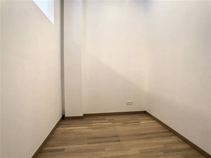 Quartier Botanique - Op de begane grond van een gebouw met 3 verdiepingen - Prachtig volledig gerenoveerd kantoor +/-32m²- Bestaande uit: Ingang in een commerciële ruimte van +/- 17m² met ingerichte keuken, een apart kantoor van +/-5m², een badkamer met douche van +/-2,5m²