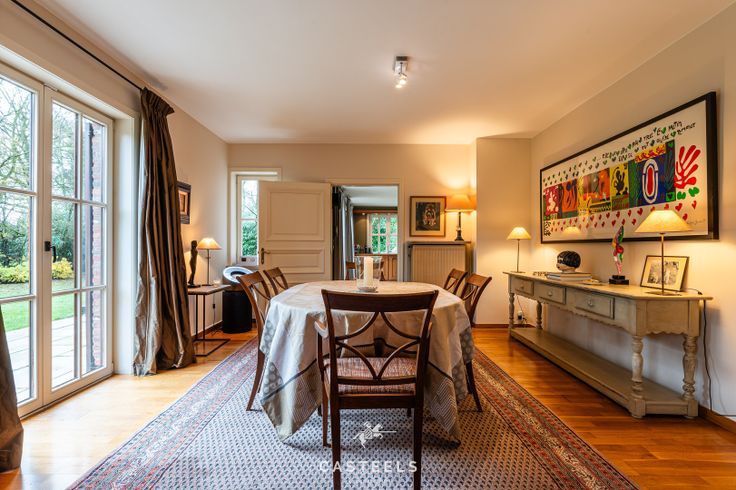 Met een bewoonbare oppervlakte van 405 m² biedt de woning ruime en lichtrijke leefruimtes, een volledig uitgeruste keuken met berging, vijf slaapkamers en twee stijlvolle badkamers. De indeling is doordacht, en materialen zoals natuursteen en houten vloeren zorgen voor een tijdloze uitstraling.