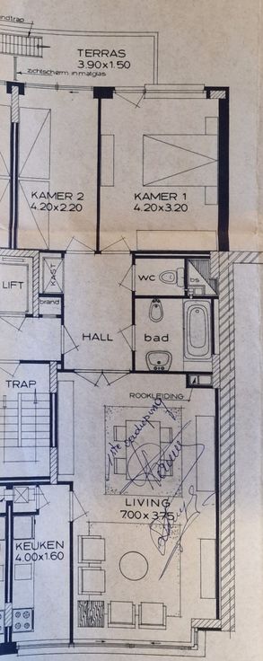 Het appartement bestaande uit een inkomhal met ingemaakte kasten, een ruime woonkamer met veel lichtinval en open ingerichte keuken. Verder zijn er nog twee slaapkamers, apart toilet, badkamer met douche en lavabomeubel, aangenaam terras aan de achtergevel.