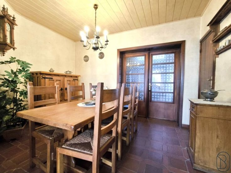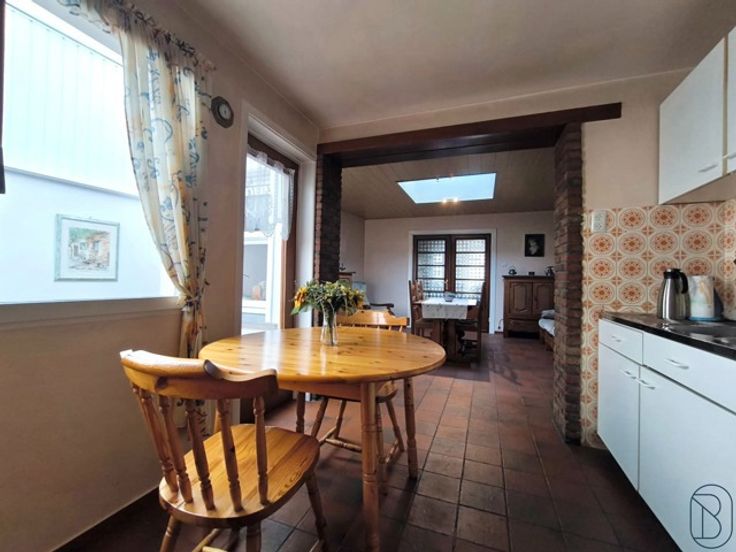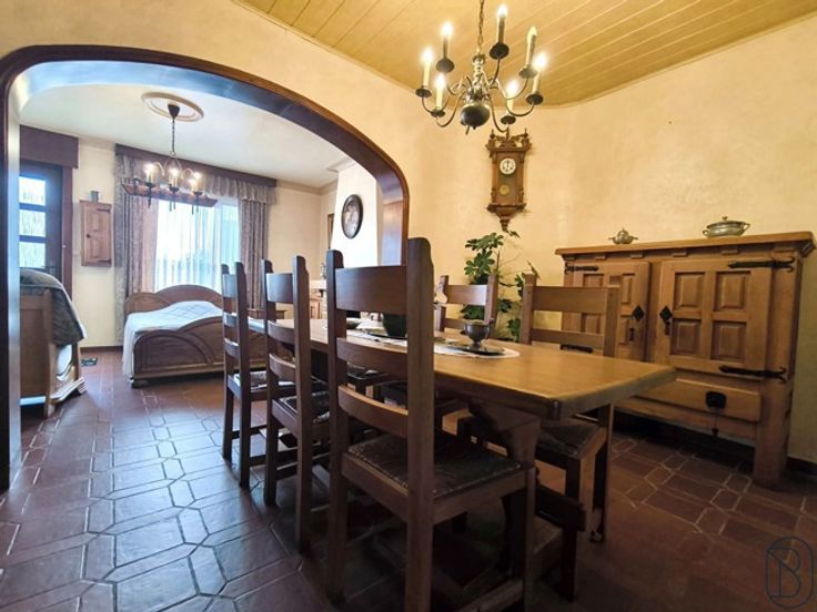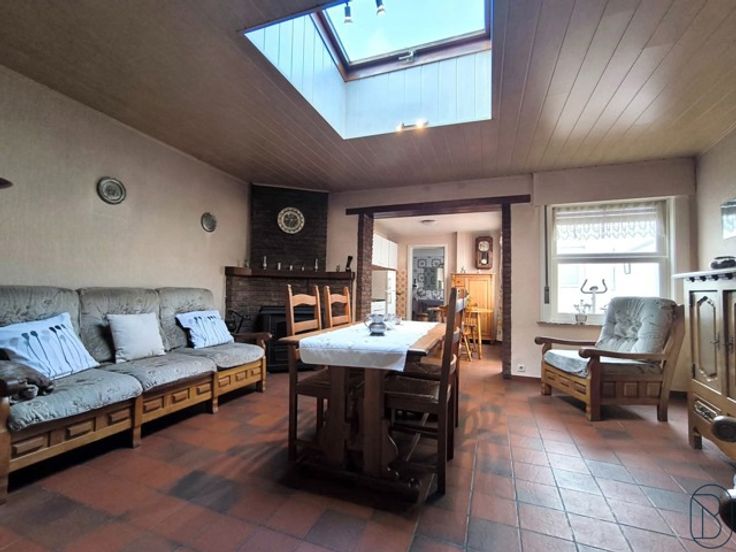 HOB met 2 slaapkamers in het hart van Pecq. Indeling: Op het gelijkvloers vindt u de grote leefruimte met open haard, eetkamer, keuken en badkamer. Veranda met toegang tot de garage en kelder. Op het 1ste verdiep bevinden zich de overloop, 2 slaapkamers en zolder. De woning heeft geen achterliggende tuin, wel een stuk grond (120m2) die zich aan de overzijde van te straat bevindt. TROEVEN: dubbele beglazing, geïsoleerde zolder, riolering,… Bezoek na afspraak met Immo Beguin