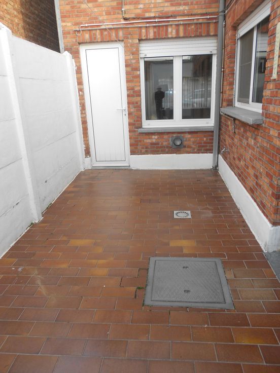 De aangename, zonnige koer/terras biedt de perfecte plek om te genieten van rustige momenten in de buitenlucht.
