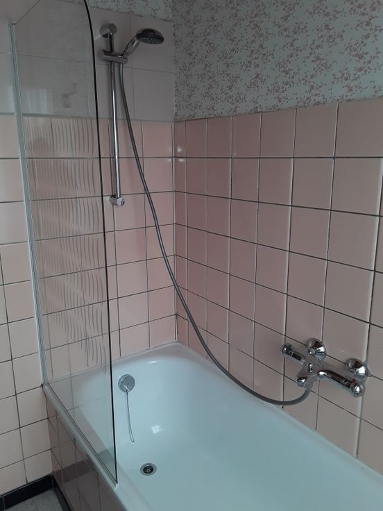 De badkamer is uitgerust met bad/douche en badkamermeubel.