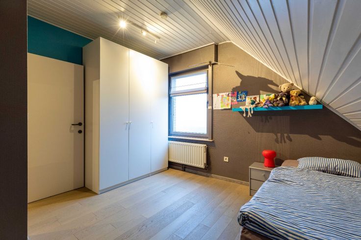 Deze residentieel, rustig en kindvriendelijk gelegen villa met zongerichte tuin (712m²) en garage werd in 1986 gebouwd en steeds vernieuwd. Zéér energiezuinige woning met héél gunstige EPC: 169 kWh/m², B! Zo zijn er reeds spouwmuurisolatie, dak- en vloerisolatie op de zolder en zonnepanelen. Er is een zéér luchtige leefruimte met mooie zichten op de prachtig aangelegde tuin met vijvers. Naast de leefruimte bevindt zich de eetkeuken met nieuwe toestellen, handige koele berging en wasplaats. Grote garage met elektrische poort (nieuwe motor) en extra bergruimte. Er zijn boven vier slaapkamers en een vernieuwde badkamer ('10) met douche, wasbekkens en toilet afgewerkt met geklopt arduin. De handige bergzolder is te bereiken via een schuiftrap. De villa is uiterst rustig gelegen en heeft als buren een speel- en moestuin, super rustig! De tuin werd zéér bedacht aangelegd zodat er tal van plekken zijn om te genieten! Volgende zijn ook aanwezig: dubbel glas met merbau hout, elektrische rolluiken, stads-en regenwater (2X5000l), glazen schuifdeuren, ... Tussen 2006 en 2024 werden volgende nog vernieuwd: 9 zonnepanelen, spouwmuurisolatie ('15), dakisolatie ('11), verwarmingsketel op gas, HR+, condens ('15), koperen dakgoten, badkamer en toilet beneden ('10), gashaard ('06), regenpomp ('23), terras ('24), natuurlijk ventilatiesysteem ('24), parket laminaat boven ('10), ... Goedgekeurde elektriciteit! Een steeds vernieuwende, uiterst rustig en perfect instapklare energiezuinige villa me