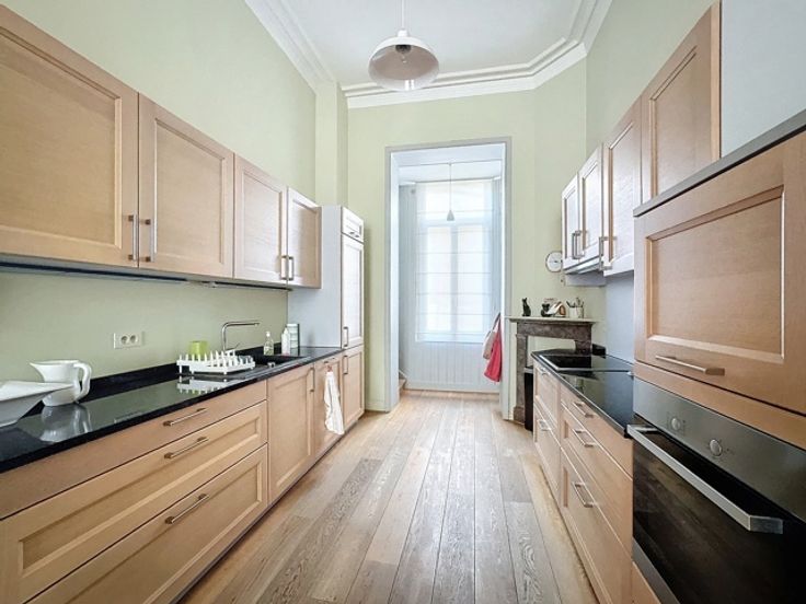 In het hart van Brussel, tussen Place de la Liberté en Place des Barricades (op een steenworp afstand van de Europese wijk, ambassades en zakencentra), prachtig huis van ± 253 m² bruto in uitstekende staat. Het is als volgt samengesteld: Inkomhal, 2 mooie aangrenzende kamers van ± 14,6 en 11,9 m² met veranda van ± 6 m² en extra keuken met uitzicht op een binnenplaats van ± 12 m², woonkamer van ± 22,2 m² met balkon, eetkamer van ± 28,4 m² met balkon, open keuken van ± 11,7 m², kantoorruimte van ± 13,2 m² m², slaapkamer van ± 22 m² met kasten, doucheruimte van ± 9,5 m², slaapkamer van ± 11 m², doucheruimte van ± 4 m² met toilet. Verder: Dubbele beglazing, parketvloer, gasboiler, veel bergruimte, kelder, wasruimte, wijnkelder. PEB: E-. Mogelijkheid tot vrij beroep. Ligging: in de directe omgeving bevindt zich het Koninklijk Park en het prestigieuze nieuwe Astoria hotel (onlangs gerenoveerd). Om zo snel mogelijk te ontdekken!