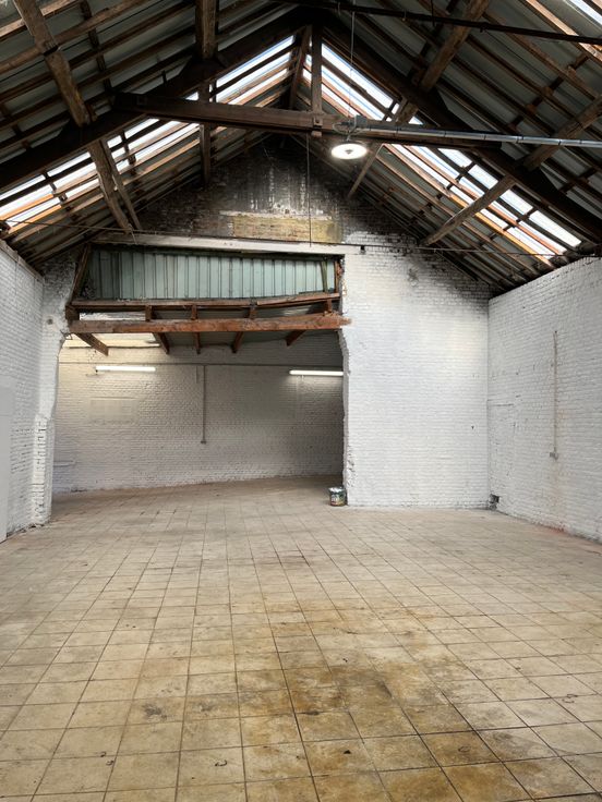 +\- 270m2 carrelé , nouvelle électricité, nouveaux châssis , local en U , porte électrique, wc. Bail de droit commun entrepôt de stockage uniquement ( pas de bail commercial) 3mois de caution Libre immédiatement Pas sérieux s’abstenir