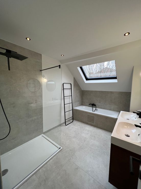 De tweede verdieping biedt een grote slaapkamer en een mezzanine, ideaal als extra slaapkamer of bureau. De stijlvolle badkamer beschikt zowel over een bad als een douche en er is een apart toilet.