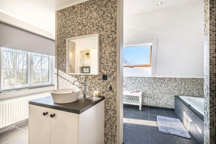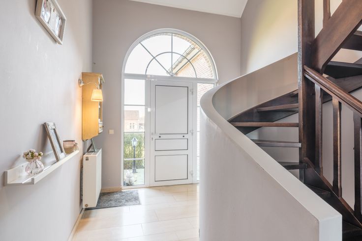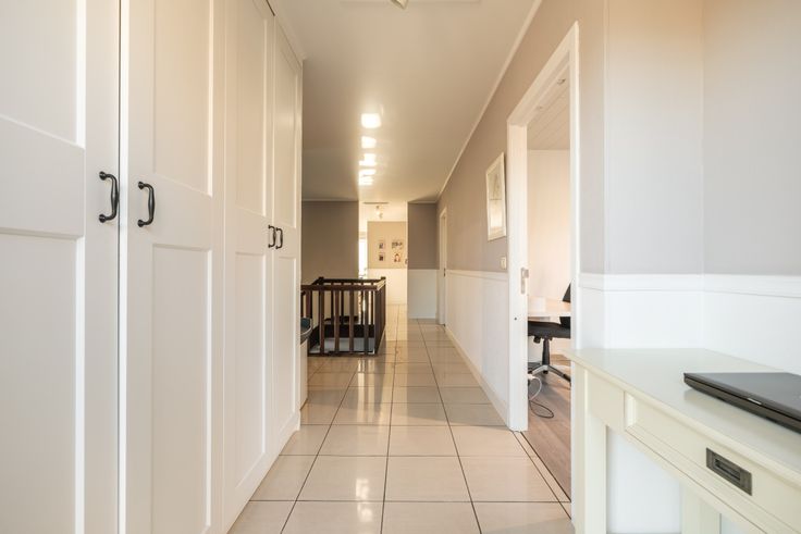 De massieve trap brengt ons naar de 1 ste verdieping met 4 ruime slaapkamers en een ruime mooi uitgeruste badkamer.