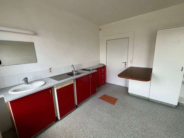 Particulier loue au 1er étage d’un petit immeuble privatif en mono propriété, Kot très lumineux et calme avec kitchenette, frigo, lavabo, placard, espace lit.