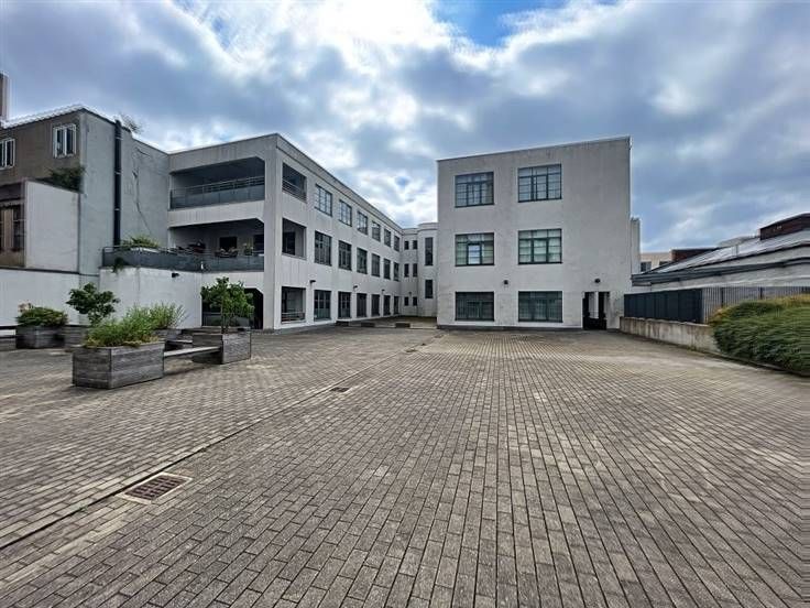 Quartier Canal - In een mooi industrieel gebouw, in een beveiligd complex met conciërges en grote gemeenschappelijke binnenplaats - prachtig loft-appartement +/- 70m² met een mooie, lichte woonkamer met een open, volledig ingerichte keuken (elektrische kookplaat, oven, afzuigkap, enz.) van +/-40m², een mooie slaapkamer van +/-14m², een doucheruimte met watertoevoer voor wasmachine, een apart toilet, kelder (-2), grote gemeenschappelijke binnenplaats - Overal dubbele beglazing - Beschikbaar per direct. PEB: D+