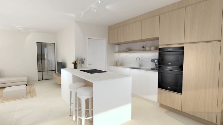 Het volledige interieur (keuken, badkamer, kastwerk, ...) kan door de koper nog volledig samengesteld worden. Daarvoor kan de koper beroep doen op de interieurarchitecten van Ooms Woonrealisaties. Zij zorgen voor een ontwerp (incl. uitvoering) op maat.