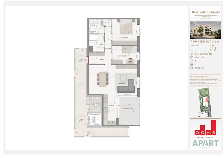 Appartement C1.9 is één van de 22 BEN-appartementen van nieuwbouwproject Lichtveld in Tessenderlo.