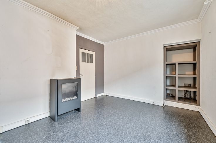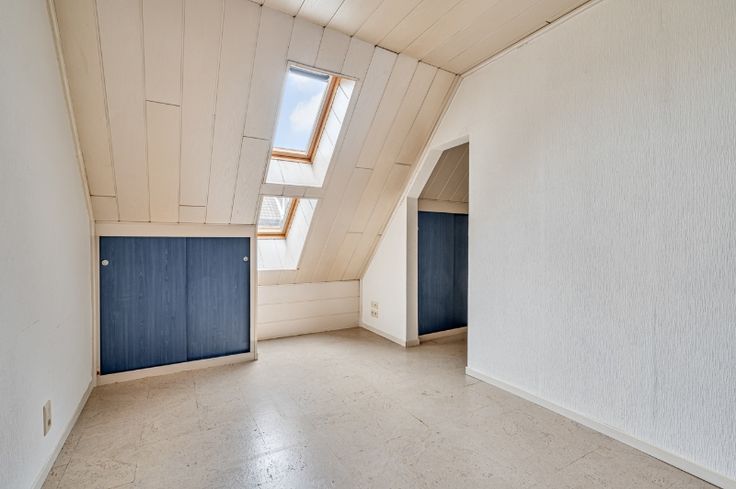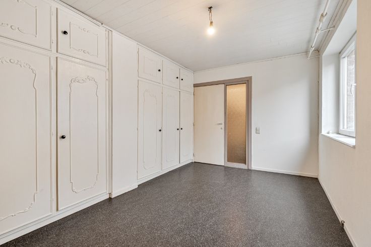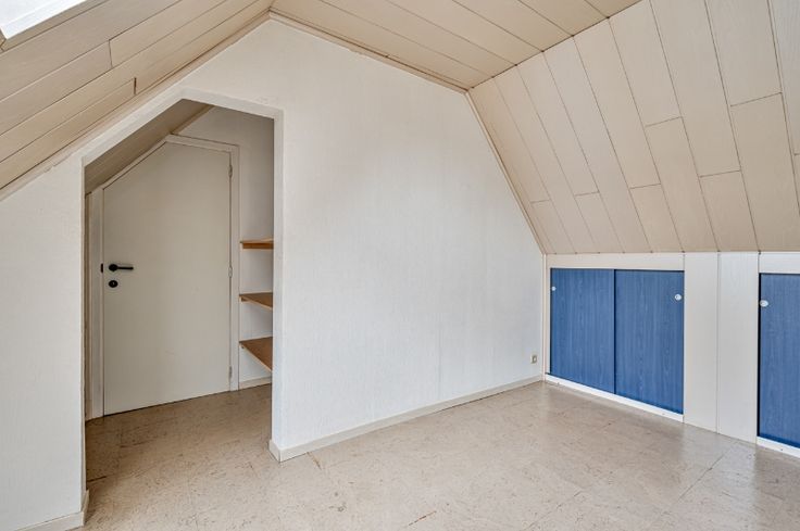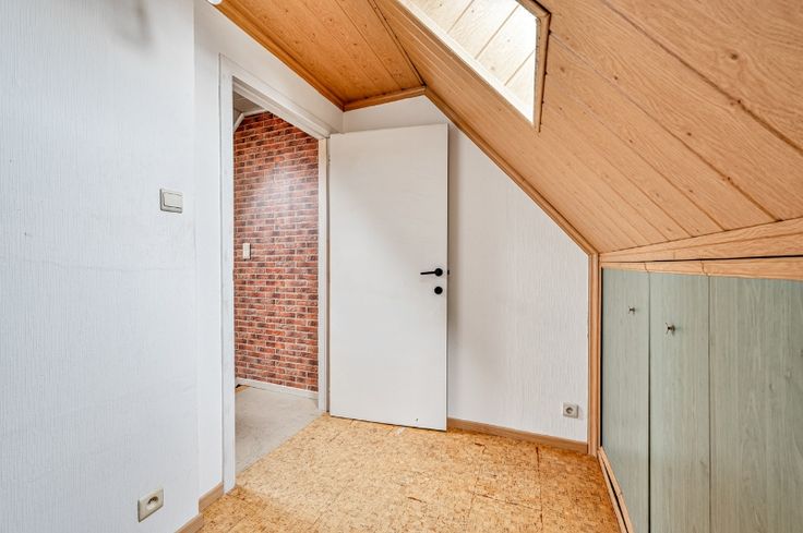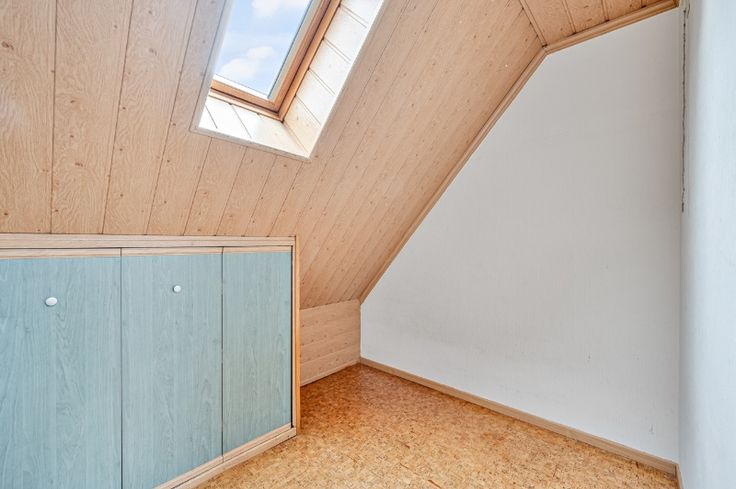 Op het verdiep: slaapkamer en bureeltje. Aardgasverwarming.
