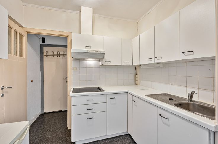 Hal, U-vormige living en een eenvoudig ingerichte keuken, slaapkamer met ingemaakte kasten,badkamer met ligbad en toilet.