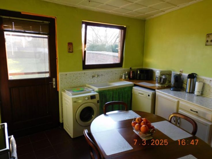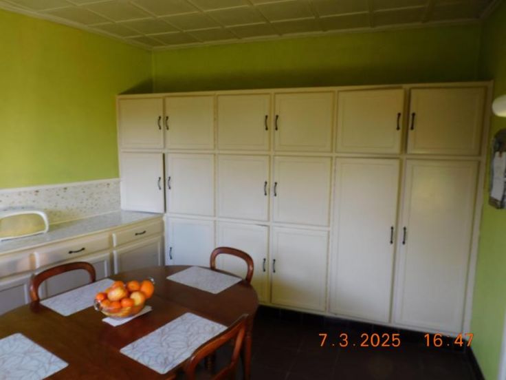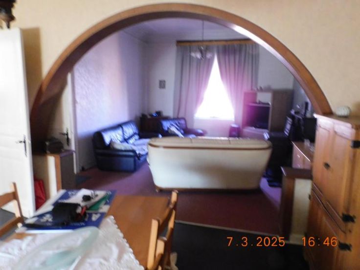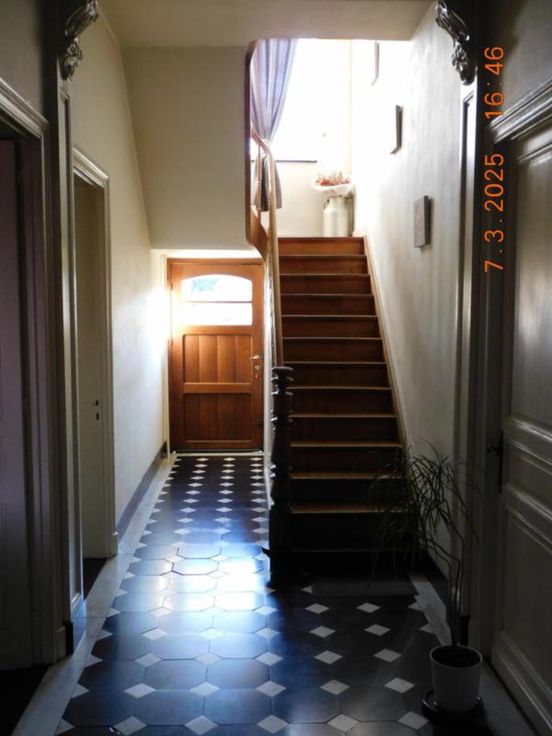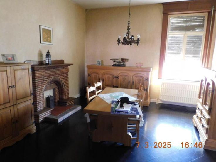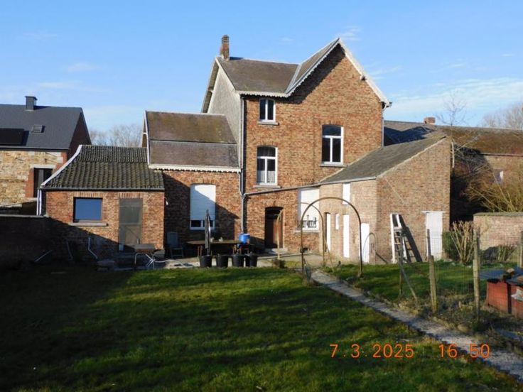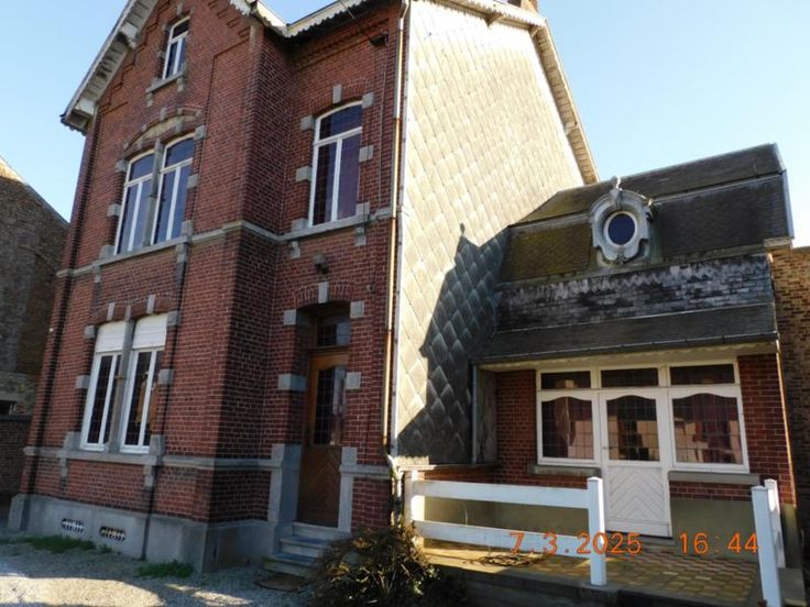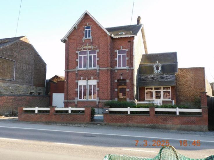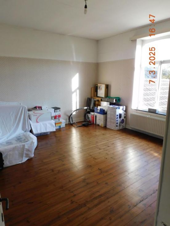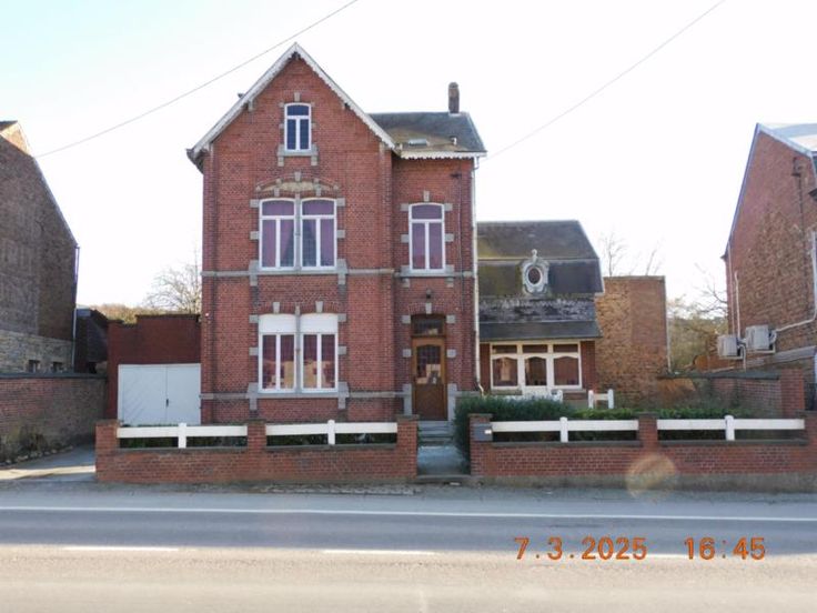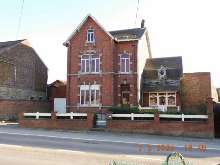 Bonne maison d'habitation avec beaux volumes comprenant : Rez-de Chaussée : Grand hall, vaste living - salle à manger, salon, cuisine semi-équipée, garage, atelier, terrasse et jardin, Etage : Hall de nuit, 3 grandes chambres, salle de bains (baignoire - W.C. - lavabo). Grand grenier aménageable. Bien actuellement loué 800,00 euros par mois. Confort : châssis bois simple vitrage, chauffage central au mazout. Revenu cadastral : 730,00 euros. Renseignements et visites : téléphoner à l'Etude.
