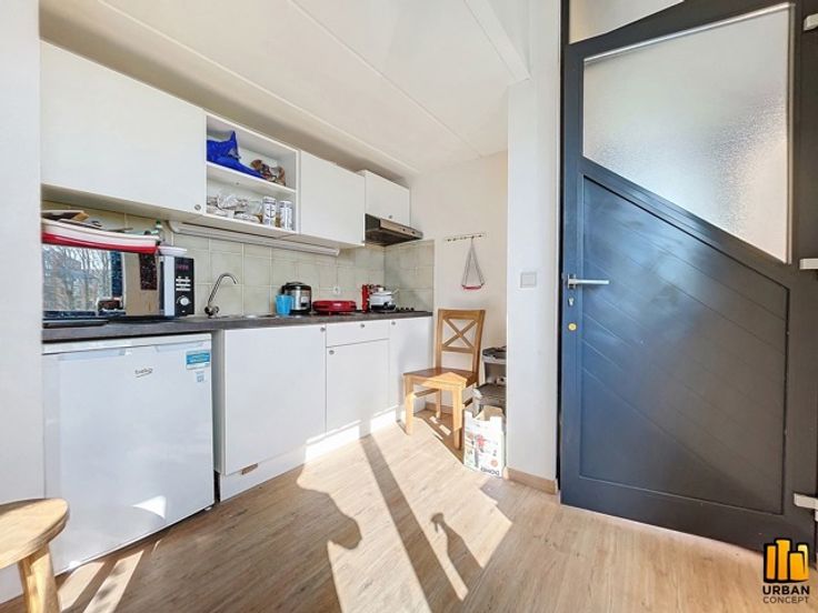 1ste verdieping: een semi-uitgeruste keuken, een woonkamer en een badkamer.
