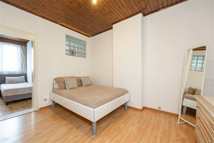 Aan parkeerplaats heb je alvast geen tekort hier, met een eigen garage – mét sectionaalpoort – én een oprit. Ook handig hier in de verwarmde garage is de aansluiting voor je wasmachine en droogkast. De betegelde inkomhal leidt je naar een eerste slaapkamer achter de garage, met een ensuite badkamer, die een douchecabine en een lavabo met meubel en apart toilet heeft. Het dubbele schuifraam achteraan geeft uit tot de betegelde stadstuin. Die heeft weinig inkijk, met nette muren in crepi. Via de originele houten trap in de hal ga je naar het eerste, waar je vooraan de L-vormige leefruimte binnenstapt die heel wat licht binnen trekt. De betegelde, geïnstalleerde keuken in U-vorm bevindt zich achter de leefruimte. De keukentoog, met geïntegreerde tafel, zorgt al meteen voor extra werkruimte. Je hebt hier een gasvuur, dampkap, driedubbele spoelbak, oven, koelkast en veel kastruimte. Op de tweede verdieping vind je nog drie lichte, fijne slaapkamers op een laminaatvloer. De ruime master bedroom zit vooraan, met een tussenkamer ernaast die leidt naar de achterliggende derde kamer met badkamer daarnaast en een apart toilet. De badkamer is betegeld, met een ligbad, een lavabomeubel met onderkast en twee grote verticale kasten, en een raam voor natuurlijk licht én lucht. Je woont hier in een gegeerde buurt in Deurne-Zuid, vlakbij het Boekenbergpark met z’n zwemvijver én het Te Boelaerpark. Meer info: https://www.immovasta.be/panden/gegevens/14011/