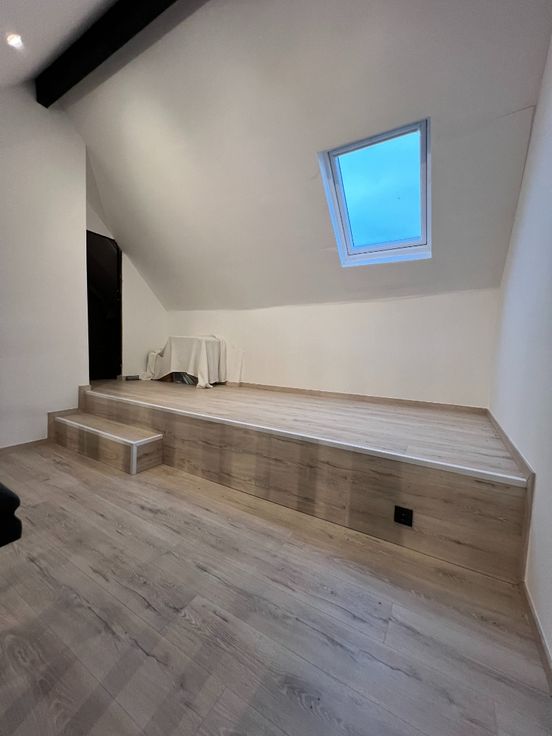 Daarnaast is er een praktische berging van 3,25 m² en een ruime hal van 12,3 m² die toegang biedt tot de verschillende vertrekken. De badkamer van 8,75 m² is voorzien van een lavabo, toilet en douche en garandeert optimaal comfort. De woning beschikt over drie kamers: twee ruime slaapkamers van respectievelijk 15,7 m² en 11,2 m², en een bureauruimte van 9,2 m², ideaal als thuiswerkplek of hobbykamer.