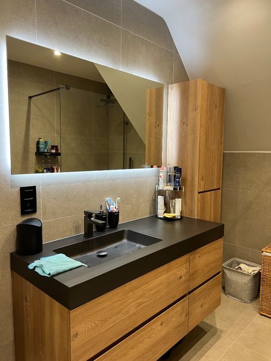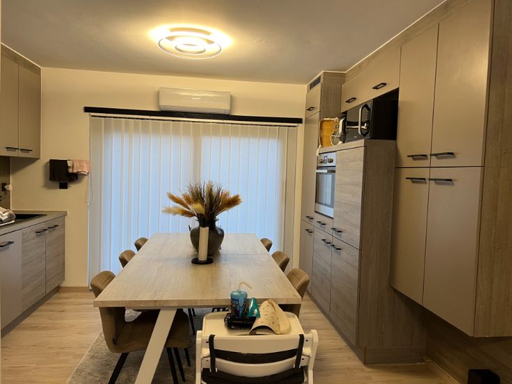 Deze ruime en gunstig gelegen woning biedt een hoge afwerkingsgraad en is voorzien van alle moderne comfort. De lichtrijke woonkamer van 36 m² beschikt over een gezellige houtkachel, wat zorgt voor een warme en uitnodigende sfeer. Aansluitend bevindt zich de keuken van 9,5 m², uitgerust met moderne Whirlpool-toestellen, waaronder een oven, microgolf, vaatwasser, dubbele spoelbak, koelkast en diepvriezer – perfect voor al uw kookbehoeften.