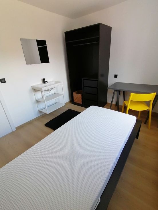 De kamer is ruim en gemeubileerd met een bed, een grote kast, een tafel en een stoel. Er komt veel natuurlijk licht binnen door een groot raam. De kamer is perfect voor wie op zoek is naar een werkvriendelijke en ontspannende omgeving. Je geniet ook van een rustige sfeer in een privébuurt, terwijl je dicht bij voorzieningen en het openbaar vervoer naar Luxemburg bent.