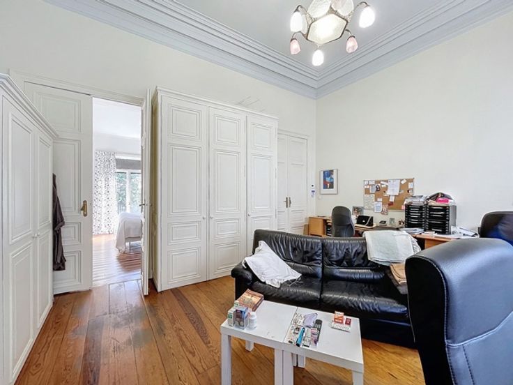 Entre Botanique et Madou, dans une rue calme à sens unique, superbe maison de Maître de ± 365m² bruts avec grand jardin de ± 110m². Composition : RDC : vaste hall d'entrée, 3 pièces en enfilade de ± 50m² donnant sur la terrasse avec accès au jardin, cuisine super-équipée de ± 20m². ENTRE-SOL : salle de bains avec wc séparé. 1ER : hall, deux grandes chambres de ± 29 et 20m². 2E : hall, deux grandes chambres 19 et 18m², salle de bains, wc séparé. 3E : hall, deux grandes chambres dont une avec mezzanine, salle de bains. SOUS-SOL: grandes caves, atelier, chaufferie, buanderie. Détails : superbe maison de maître de 1850, parquet et boiserie d'époque en parfaite condition, haut plafond avec moulure, fibre, panneaux solaires, double vitrage, volets. Possibilité d’acquérir un box garage. À proximité de toutes commodités, nombreux commerces, restaurants, écoles, parcs.... Transports en commun : Station Botanique et Madou, tram 92, bus 61, 65, 66. Annonce et indications non contractuelles, sous réserve de modifications. Info : est@macnash.com – Tel : 02 779 99 99 – ID 6629858