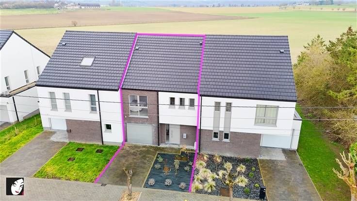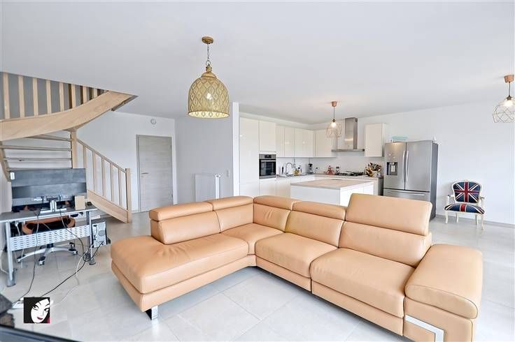 Sorry er is geen nederlandse vertaling beschikbaar. Nouvelle villa jumelée située dans un quartier calme et à la fois proche de toutes les commodités, construction récente (+/- 2 ans) toujours sous garantie décennale et construite avec des matériaux de qualité, très bien pensée, hyper lumineuse et avec une vue à couper le souffle. Maison avec parking aménagé, garage, terrasse en partie couverte et un très beau jardin arboré. Composition : hall d’entrée, WC indépendant, possibilité de seconde salle d’eau si vous le désirez, actuellement espace rangement, vestiaire, garage et agréable séjour avec cuisine équipée intégrée ouverte donc très conviviale. A l’étage : hall de nuit, 3 grandes chambres indépendantes dont une avec salle-de-bains privative (suite parentale), salle-de-bains supplémentaire, second WC indépendant + buanderie. Également un grand grenier aménageable, ce qui est rare pour une nouvelle construction. Infos utiles : bonne toiture en tuiles, plateforme en EPDM, le tout isolé, façade en crépis avec isolation, triple-vitrage alu, porte de garage sectionnelle et motorisée, chauffage central au gaz de ville, électricité neuve et réceptionnée, compteur intelligent, béton + carrelage ou parquet, possibilité de citerne d’eau de pluie, différentes entrées, possibilité d’extension, VMC, robinet extérieur. Maison coup de cœur, idéale pour une famille souhaitant s’y épanouir. De +, cadre très agréable avec la possibilité de réaliser de belles balades dans les environs.
