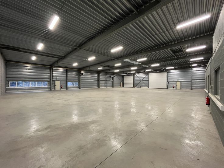 - voorzien van een polybetonvloer (3 T/m²), verlichting en aerothermen op gas