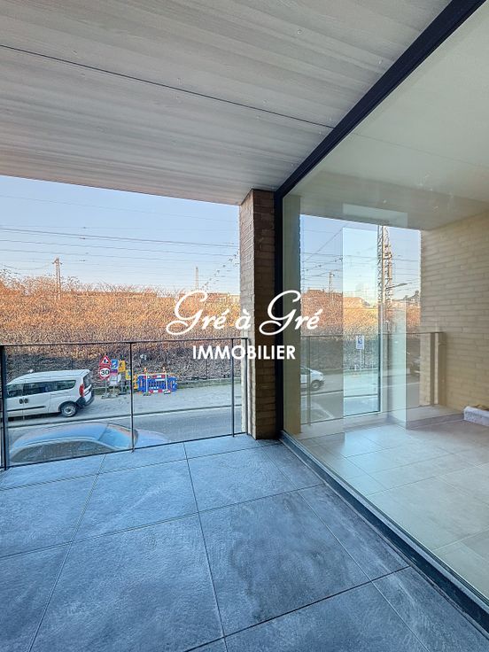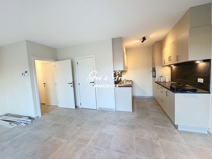 htbij de Noordwijk, winkels en vervoer, op de eerste verdieping van een klein gebouw met lift, licht NIEUW appartement (1e bewoning) inclusief een inkomhal met beveiligde deur, woonkamer (30m²) met volledig ingerichte keuken (afzuigkap, kookplaat, oven, koelkast, vaatwasser) en toegang tot het overdekte terras op het zuidwesten. Doucheruimte met grote Italiaanse douche, mooie slaapkamer (14m²), apart toilet met fonteintje, wasruimte/stookruimte/VMC ventilatie, glasvezel internet geïnstalleerd). Kelder en parkeerplaats inbegrepen voor één auto in de kelder van het gebouw.
