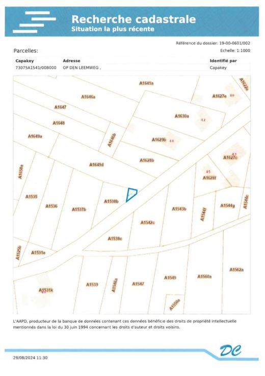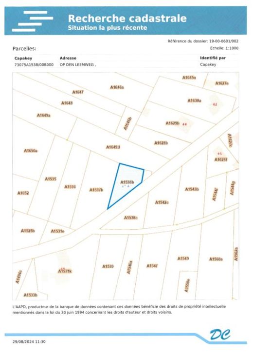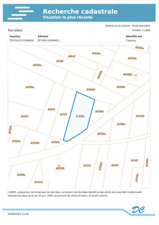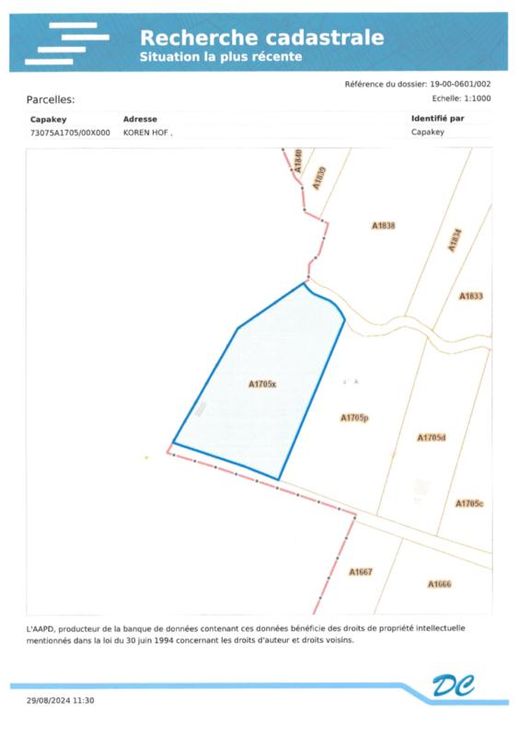 Terres agricoles située en lieu-dit Op Den Leemweg : 1- Référence cadastrale : section A numéro 1537BP0000, superficie de 1.530 m² - RC : 10 euros 2- Référence cadastrale : section A numéro 1538BP0000, superficie de 680 m² - RC : 4 euros 3- Référence cadastrale : section A numéro 1541BP0000, superficie 40 m² - RC : 0 euro 4- Référence cadastrale : section A numéro 1705XP0000, superficie 3.204 m² - RC : 24 euros (pâture) prix au mètre carré : 5 euros Les parcelles 1537B-1538B et 1541B sont attenantes et se situent Route de Mouland voir les plans cadastraux et matrice cadastrale en annexe P score: A