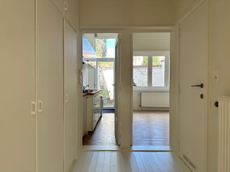 Het appartement op de gelijkvloerse verdieping maakt deel uit van een gebouw met 3 appartementen met zeer aangename huurders. Het appartement omvat een living, een tussenruimte met ingebouwde kasten, een kleine badkamer voorzien van een toilet en douche, een slaapkamer en een keuken die toegang geeft tot het terras en de tuin.