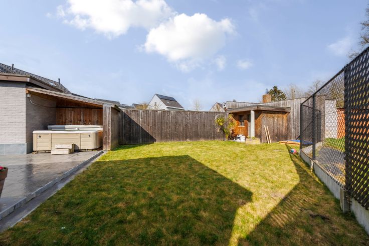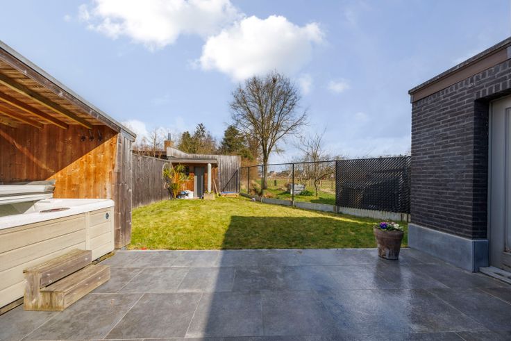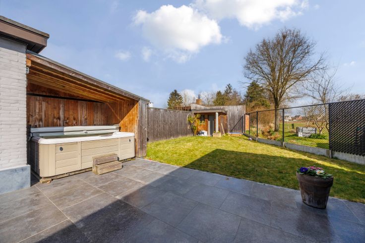 Deze instapklare open bebouwing in Nijlen biedt 137 m² woonruimte op een perceel van 321 m². De woning beschikt over twee opritten met plaats voor drie wagens en een ruime garage met elektrische poort. Binnen valt de lichtrijke leefruimte op, met aansluitend een volledig geïnstalleerde keuken (koelkast, vaatwasser, oven, gasvuur) en een handige berging. Daarnaast is er een grote wasplaats/bijkeuken (of in te delen als ruimte voor een bijberoep) met directe toegang tot het terras van 100 m² en de tuin met maximale privacy en een overdekte jacuzzi.