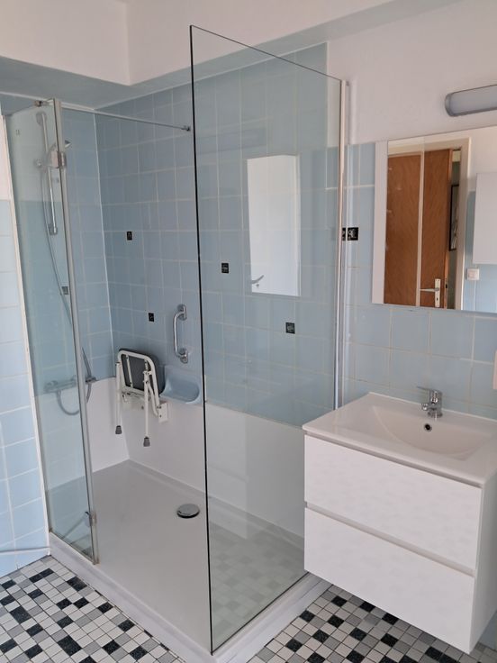 Appartement spacieux, ensoleillé et lumineux au 3ème étage avec ascenseur. Très belle vue. Il est composé d'une cuisine équipée, d'un grand living salon, de trois chambres à coucher (dont une plus petite pouvant servir de bureau ou de rangement), d'une salle de bain avec douche menant à une petite terrasse à l'arrière, d'un WC séparé. Deux placards de rangements dans le hall. Arrêt de bus à 250 mètres. Proche de la gare. Immeuble calme.