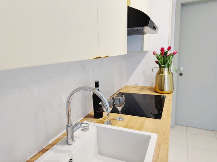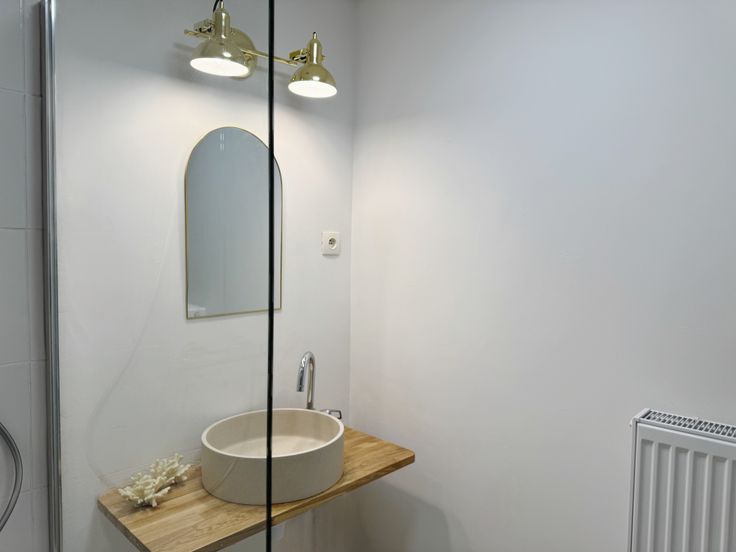 1 salle de bain moderne avec douche et vasque
