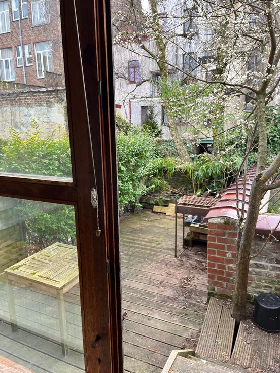 Le bien se situe dans une impasse arborée, entre la place Flagey et la place Jourdan. L'endroit est calme. Train et bus à proximité, ainsi que restaurants, magasins, grandes surfaces. Terrasse Sud-Sud ouest