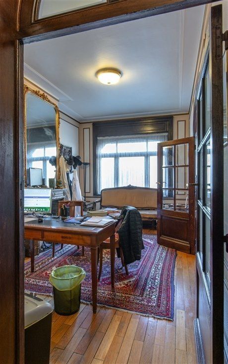 Dit aantrekkelijke herenhuis in Beaux-Arts stijl (6CH/3SDB), vlakbij de Europese instellingen/Schumann en het Jubelpark, is verbouwd tot een privépraktijk op de begane grond. De begane grond bestaat uit een vestibule, een wachtkamer, een bezoekerstoilet, een onderzoekskamer en een dokterspraktijk die toegang geeft tot de aantrekkelijke tuin van ca. 97 m2. 1e verdieping: grote centrale overloop die leidt naar een zitkamer aan de voorzijde met bow-window en open haard en, aan de achterzijde, een eetkamer uitgerust met een cassette, een grote super-uitgeruste keuken die uitkomt op het terras en de trap die leidt naar de tuin op het zuidoosten. Op de 2e verdieping: aan de achterzijde, de master suite met een lichte marmeren badkamer en grote ramen, kleedkamer, aan de voorzijde :een grote slaapkamer met en-suite badkamer met douche en kleedkamer. De 3e verdieping bestaat uit 4 slaapkamers met inbouwkasten, 1 doucheruimte en 1 apart toilet. Onder het dak bevindt zich een ruime speelkamer met veluxraam en veel bergruimte. De kelder bestaat uit verschillende kelders en een was-/stookruimte. Een lift leidt van de kelder naar de 2e verdieping. Prachtige originele kenmerken, deugdelijke elektra, condensatieketel op gas, zonnepanelen, EPB: F (332kWh/m2.an) - Gebieden en informatie worden alleen ter informatie gegeven. Moet gezien worden: BEZOEK: 0475/65.16.32. Meer informatie op WWW.HOUSINGANDHUMANS.COM