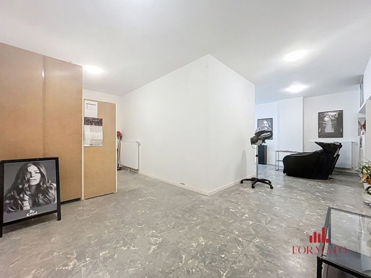 Met zijn geoptimaliseerde U-vormige indeling en een grote glazen etalage van 7 meter lang, biedt het salon maximale zichtbaarheid. Het bestaande meubilair is inbegrepen en het pand beschikt over een achtergedeelte met toilet en kleine keuken, evenals een privébuitenruimte van 20 m². De ruime kelder, bestaande uit drie aaneengeschakelde kamers van ongeveer 46 m², biedt waardevolle opslagruimte. Individuele meters voor water, gas en elektriciteit zorgen voor onafhankelijk nutsbeheer.