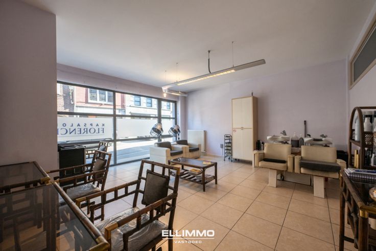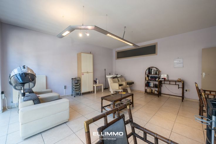 Handelspand, nu kapsalon, met aansluitend appartement 1 met ruime leefruimte en open wandkeuken, 2 slaapkamers, badkamer en een zeer ruim terras. Via de trap komen we in de kelder van nog eens 125m2 en de zalige stadstuin. Het kapsalon en appartement zijn momenteel verhuurd.