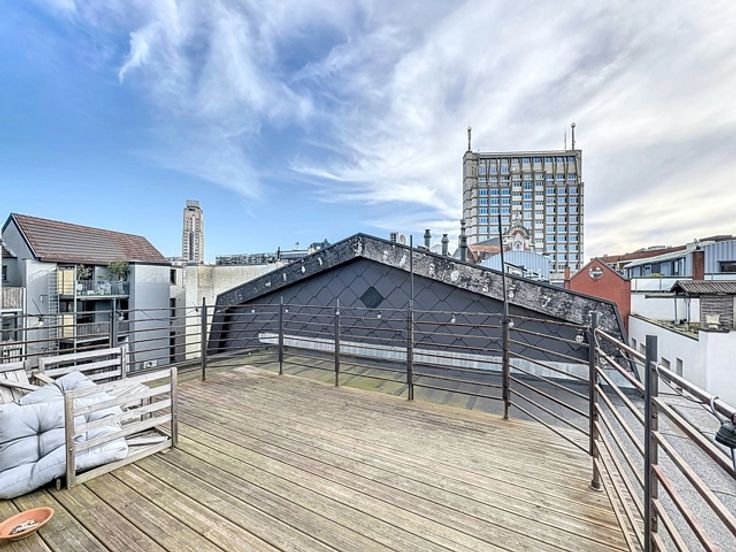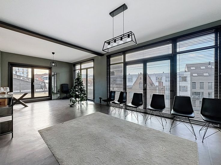 Het kantoor is bereikbaar via een trap of een exclusieve lift die enkel deze verdieping bedient. Dankzij de grote raampartijen geniet de ruimte van overvloedig natuurlijk licht en een panoramisch zicht op de binnenstad. Daarnaast beschikt het kantoor over een ruim terras van 40m².