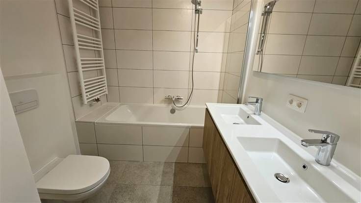Welkom in deze moderne en comfortabele appartement gelegen in het hart van Brussel aan Tour & Taxis. Met een ruime bewoonbare oppervlakte van 84m², biedt deze woning alles wat u nodig heeft voor een aangenaam stadsleven. Bij binnenkomst valt de lichte, open woonkamer direct op, voorzien van een stijlvolle open keuken met moderne apparatuur. De afgewerkte parketvloer zorgt voor een warme en uitnodigende sfeer. De grote ramen bieden overvloedig natuurlijk licht en leiden naar een charmant balkon waar u kunt genieten van rustige momenten met uitzicht op de binnenplaats. De twee slaapkamers zijn perfect voor een gezin of als thuiskantoor, en de badkamer is uitgerust met een dubbele wastafel en een kwalitatief bad/douche combinatie voor ultiem comfort. De praktische indeling maakt efficiënt gebruik van de ruimte, terwijl de neutrale afwerking mogelijkheden biedt om uw persoonlijke stijl toe te voegen. Deze eigendom profiteert van zijn centrale ligging met gemakkelijke toegang tot openbaar vervoer, winkels, en restaurants. Hoewel de garage niet gedefinieerd is, zijn er tal van parkeermogelijkheden in de buurt. De maandelijkse provisie van € 160,- dekt de kosten van gemeenschappelijke ruimtes, verwarming en Fietsplaats + individuele kelder aanwezig. Elektriciteit en water worden apart betaald. Mogelijkheid tot huren van een parkeerplaats.