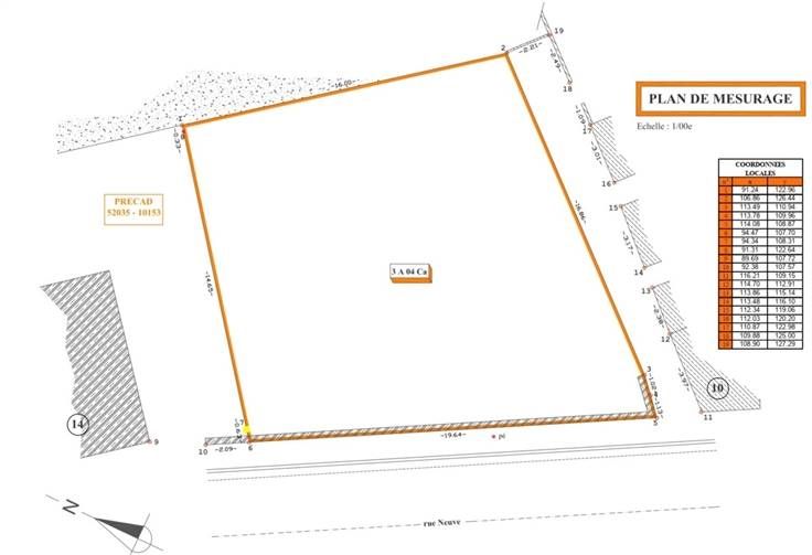 ADB Immo biedt dit terrein aan in een woonwijk, met een oppervlakte van 3 are 04 ca. Het heeft een comfortabele straatgevel van 19,64 meter.